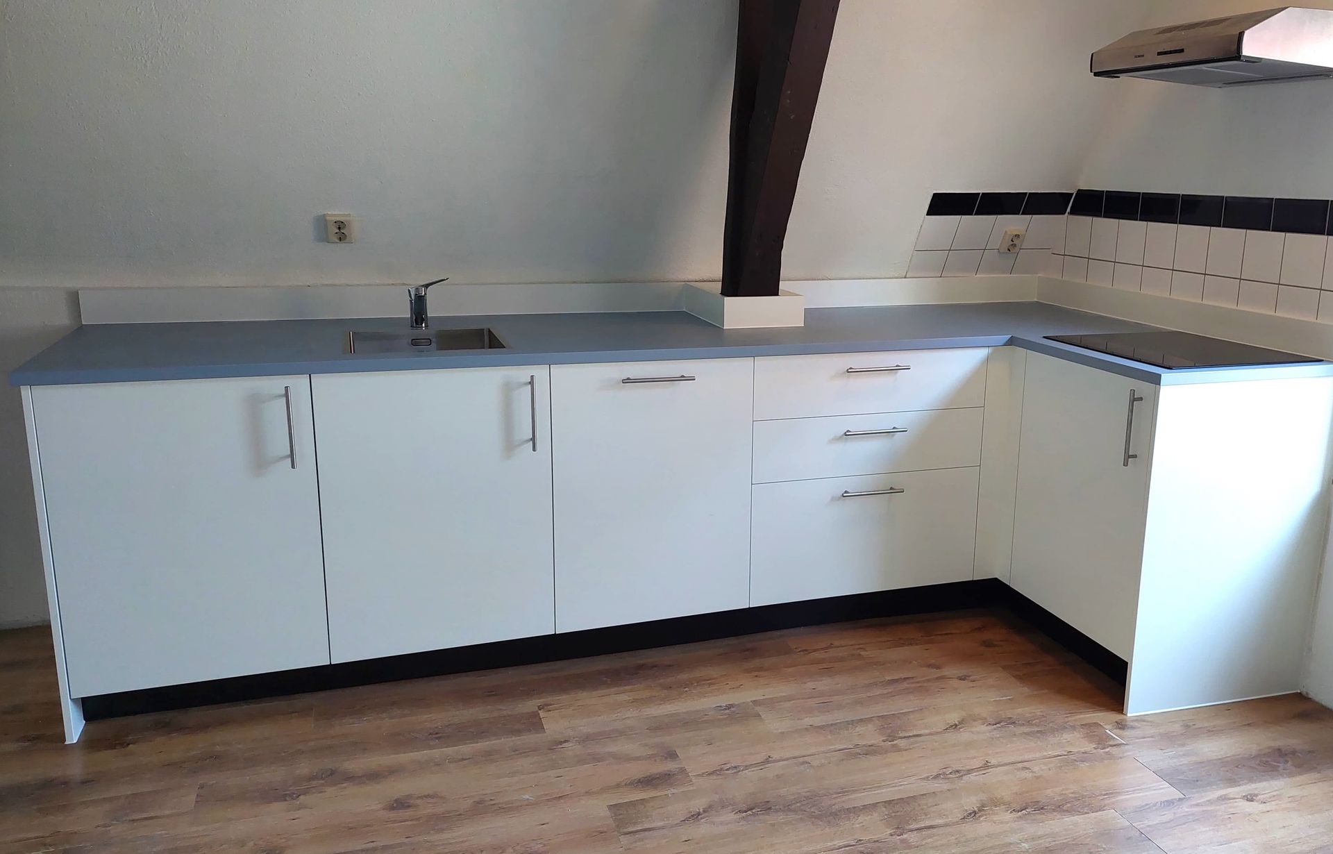In dit monumentale pand in Leiden hebben we een keuken geplaatst inclusief een maatwerk aanrechtblad
