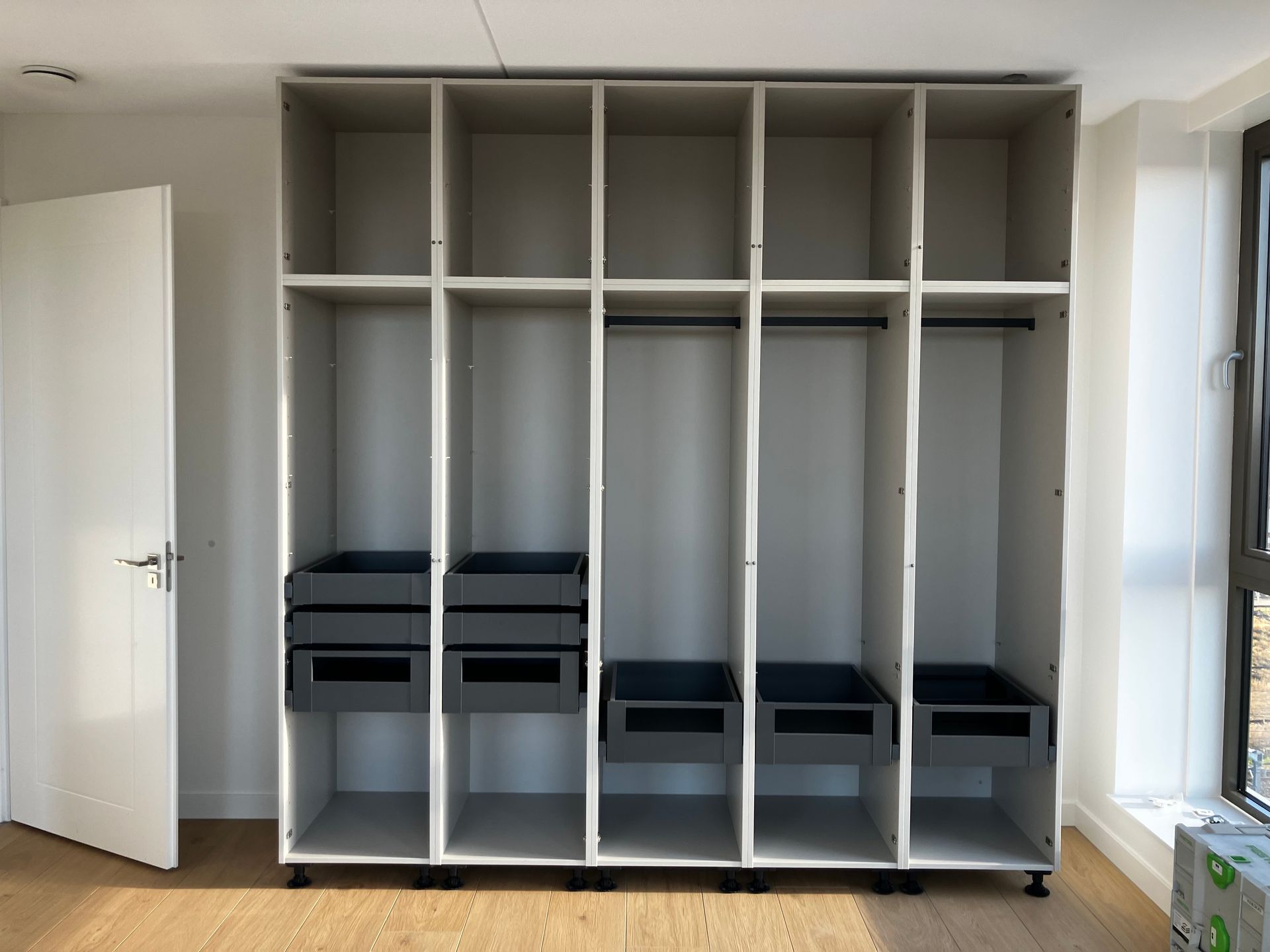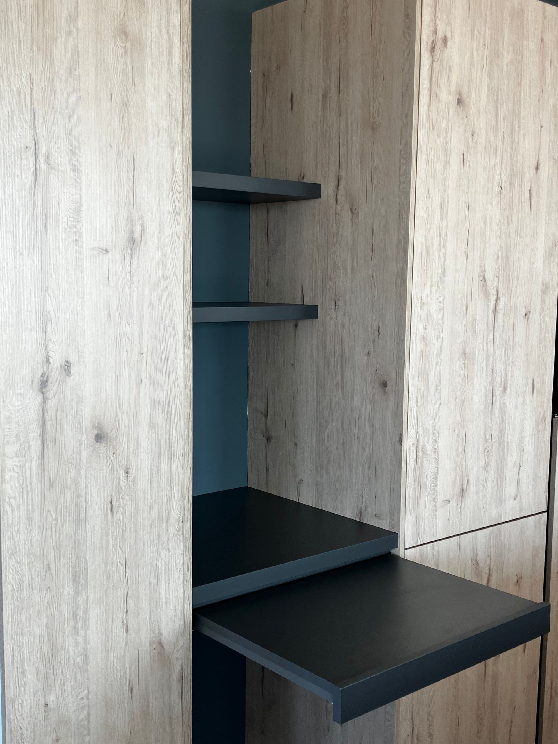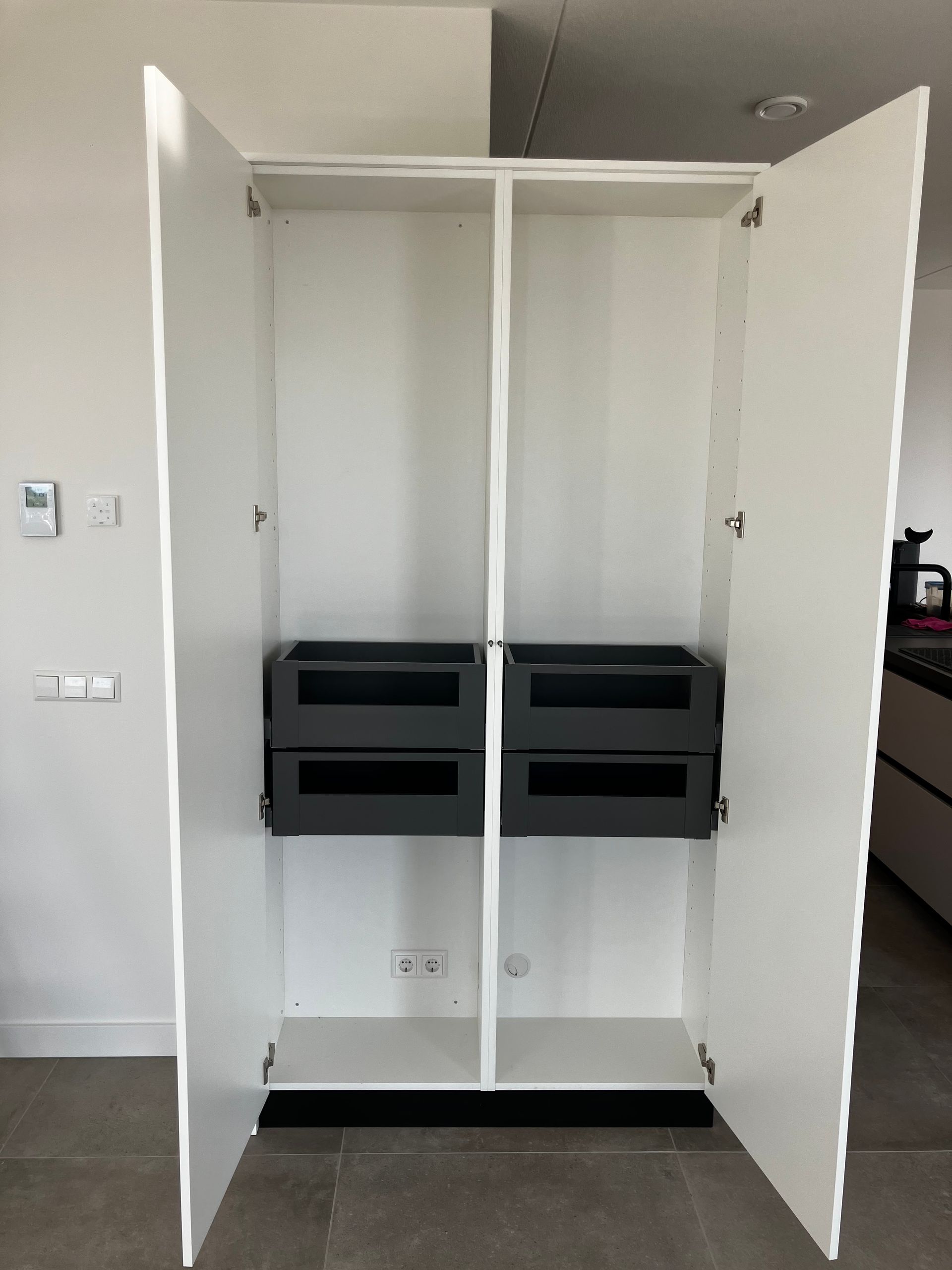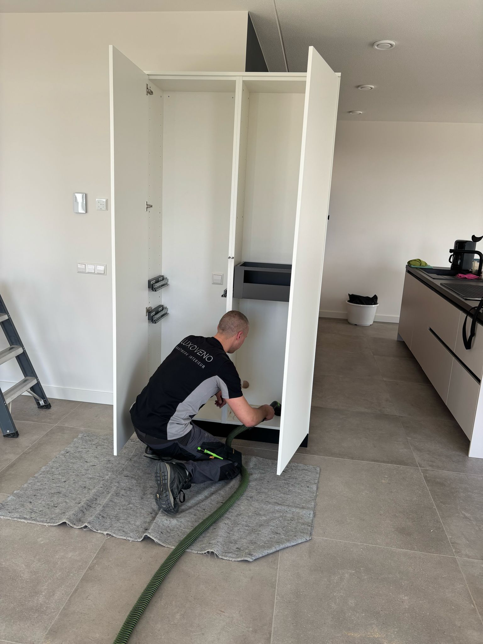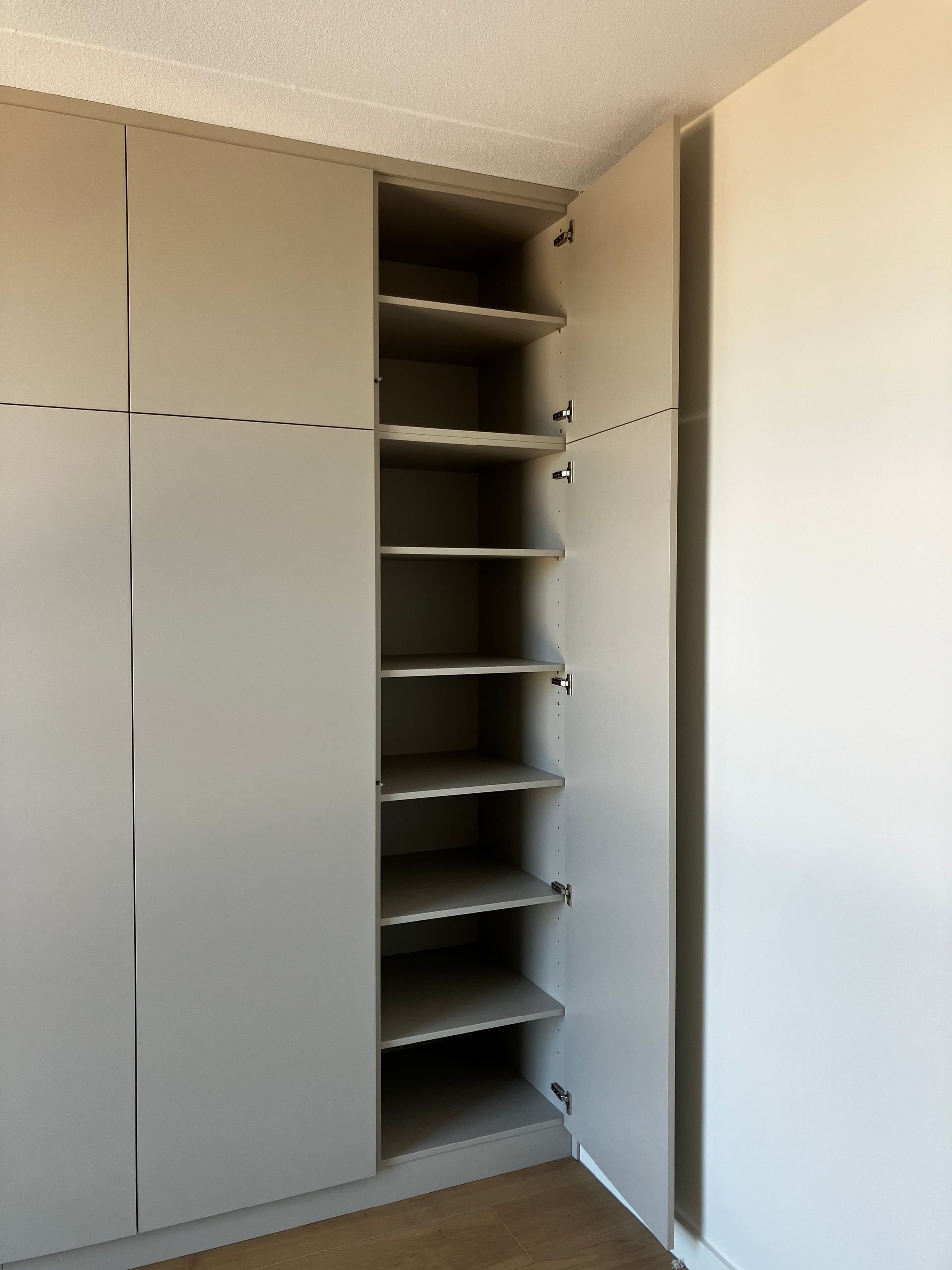 Voor een stijlvol appartement hebben wij een compleet maatwerkproject mogen realiseren, volledig afgestemd op de wensen van de klant. Zo hebben wij 2 kastenwanden gerealiseerd, 1 vrijstaande kledingkast en een kast in de keuken met geïntegreerde koffie corner, geheel aansluitend kwa stijl en kleur op de huidige keuken. Tevens hebben wij het kookeiland voorzien van nieuwe stolwanden.